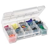 Akro-Mils , Adjustable, removable dividers create 6 to 18 compartments. Adjustable dividers included with every case. Medium cases include 4 front-to-back adjustable dividers. Grid design in lid keeps items in compartments from migrating. Molded-in feet allow cases to sit upright. ...